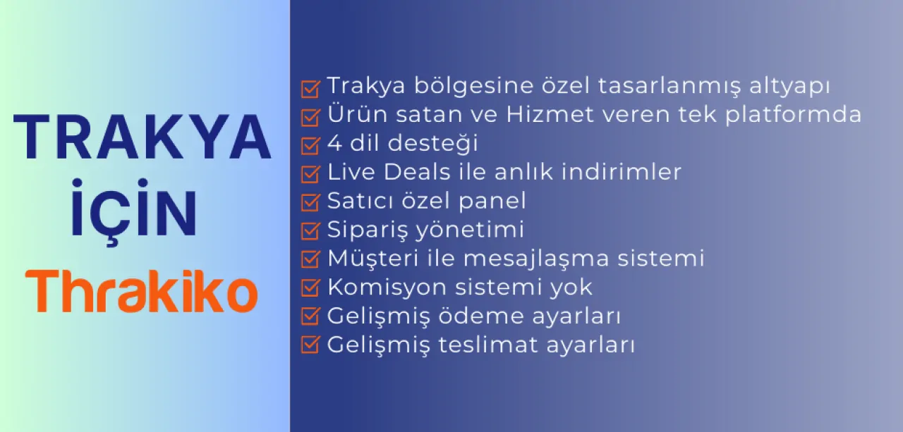 Thrakiko, Yunanistan’ın Trakya bölgesindeki işletmelerin ve hizmet sağlayıcıların dijital dünyada yer almasını sağlamak amacıyla geliştirilmiş bölgesel bir pazaryeri platformudur.